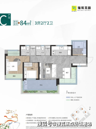 94平方米的四房两卫户型,是瑞筑花园的旗舰产品,专为追求高品质生活的改善型客户打造。