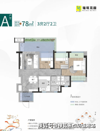 78平方米的三房两卫户型,是瑞筑花园的明星产品,也是刚需购房者的首选。在如此紧凑的面积内做出三房两卫,且保持空间的通透与舒适,体现了设计师的高超功力。